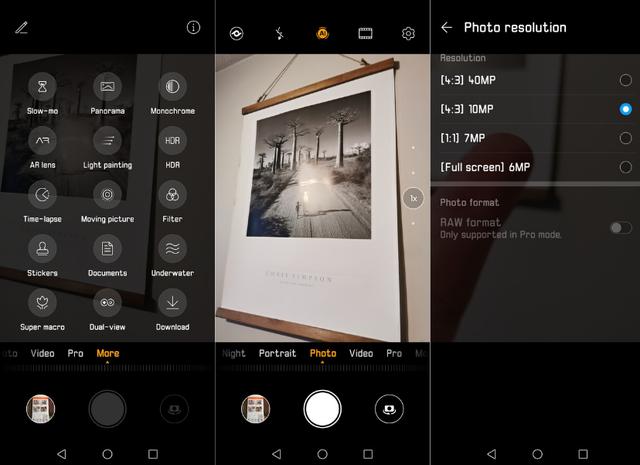 As you would expect, the camera app has a bunch of options ranging from Pro, Portrait, Night, and a whole lot more such as HDR, Panorama, Documents, AR, to name just a few. Video is much improved over the P20 Pro, with 1080 offering OIS, AIS, and 60FPS framerate and 30fps 4K video capture, it should be noted that the ultra-wide angle lens doesn’t feature EIS (Electronic Image Stabilization).