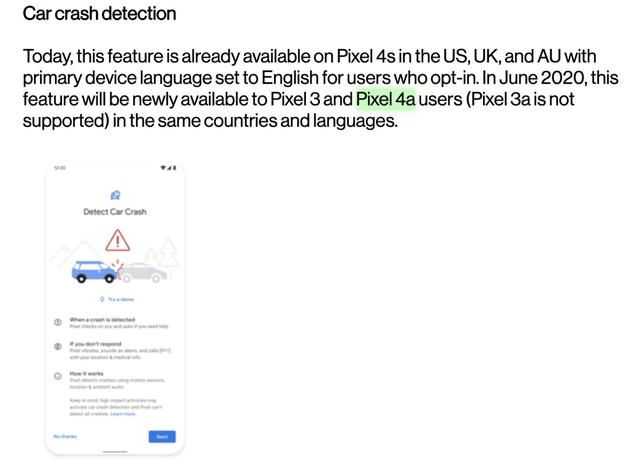 The good people over at Verizon updated their support page to show that the Pixel 4a has also received the software update to include crash detection. Is this a big hint that we should have had the Pixel 4a already or just an oversight?