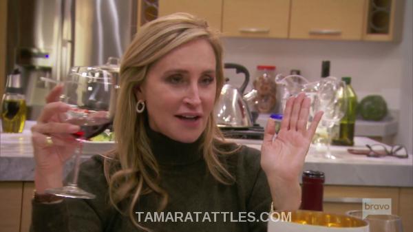 Sonja is the first to arrive at the round house. She brings wine and her dog to Lu’s house. Sonja trash talks Tinsley to Luann. Tinsley wanting a husband and a baby is not a reason to trash her. All they do is talk poorly about the others. Barbara arrives next. She has gifts. She is so nice. Luann is making dinner.