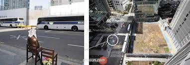 複数の市民団体が2017年から日本大使館前に「強制徴用労働者像」を設置しようとするのも、日本政府が現在の位置に大使館を新築することに負担を感じる理由の1つだとの見方もある。ある日本の外交消息筋は「日本の外務省や安倍晋三首相からすれば、ソウルの日本大使館前に慰安婦少女像と強制徴用労働者像が建つのを黙って見ているというのは難しいだろう」と語った。