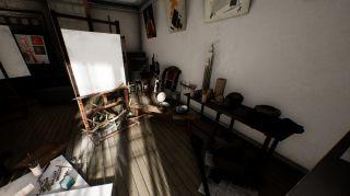 The simulator has transported me from a London office to a charming, rustic art studio full of interesting nicknacks to use in my composition. I’ve already used the Vive’s controllers to position an apple on a stack of books and place a glass bottle beside it. It’s an intuitive interface – just move a ‘hand’ over an object until it’s highlighted, hold the trigger to pick it up, and move it however you like.