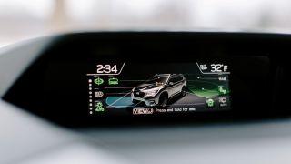 That screen up by the windshield is unique in that you can also use it to monitor other feature son the car. When you’re on the highway, that screen reminds you when EyeSight safety features are enabled for lane-keeping and blind-spot monitoring. It shows a crisp, futuristic-looking render of the Ascent that shows the active radars emanating from the front and rear, so it’s a visual cue that you have those options scanning for traffic.