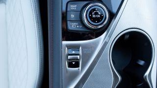 To enable it, there’s a small drive mode button to the right of the driver. You press back on it twice to enable Snow mode. (You can also use Eco mode, Sport mode and a few other settings to customize the driving mechanics.)