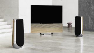 The speakers are in a three-channel configuration and are designed to work with Bang & Olufsen’s multiroom speaker sets such as the Beolab 18, Beolab 50 and Beolab 90. You can pair up to eight of these wireless speakers with the set, with the TV capable of decoding 7.1 surround sound. All can be controlled by the aluminium Beoremote One remote.