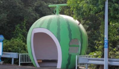 メロンの形のバス停留所が日本の盗作。