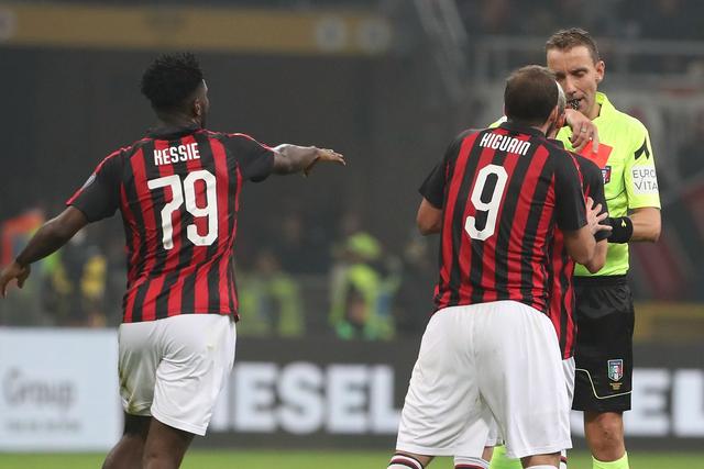 Gonzalo Higuain will miss the next two Serie A matches for AC Milan after getting a red card for dissent after getting a yellow card for a bad tackle in Milan’s loss to Juventus over the weekend.