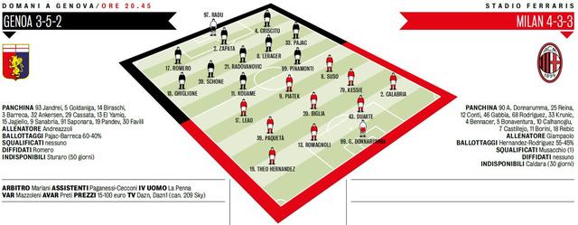 AC Milan News also quote Giampaolo calling for Milan to know how to suffer and grind out to win. This gives the indication that the football will be ugly and Milan will most likely look to steal a 1-0 win and lock down defensively. Lucas Biglia is expected to replace Ismael Bennacer as Giampaolo takes a defensive approach against Genoa.