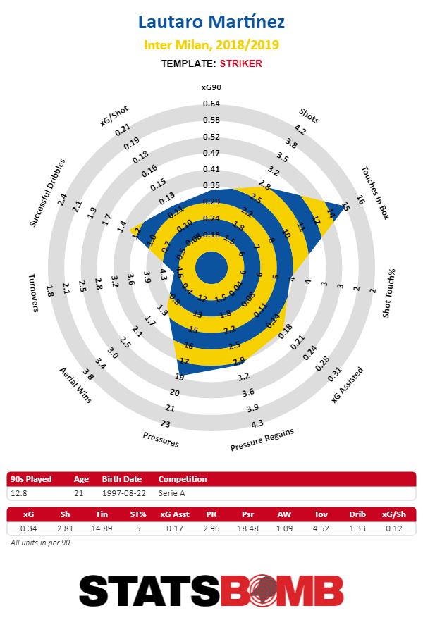 Lautaro Martinez is the second-best attacking option for Inter. He is more of a ball progressing style of the attacker and is more likely to take on a man. He is a worse finisher but is a good complimentary piece to Icardi. He will be able to open space for a poacher type with his movement.