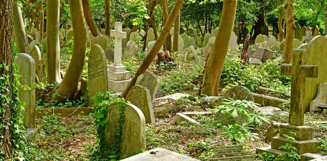 From 1832 or 1841, cemeteries were constructed around London to cope with the growing problem of the burial of the dead. Cremation was rare and seen as unacceptable, and existing graveyards were overflowing, with coffins often stacked up.