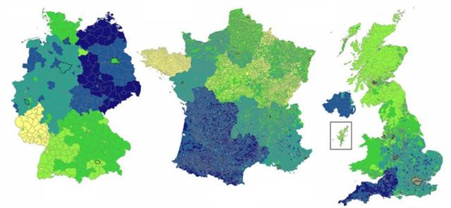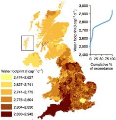 Another feature of this study is the focus on smaller regions which reveals large differences within these countries. A common theme is that rural areas have higher water footprints than cities, mainly due to differences in diet. People in London, for example, eat less red meat than other regions. This is why the UK’s highest footprints (still less than France’s smallest footprint) are found in the south-west, North Yorkshire and Lincolnshire.
