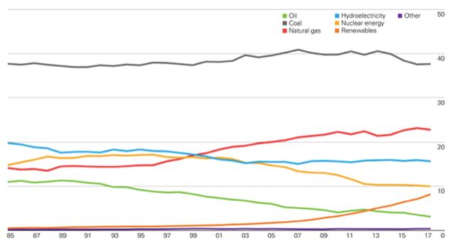 Electricity generation by source, 2017