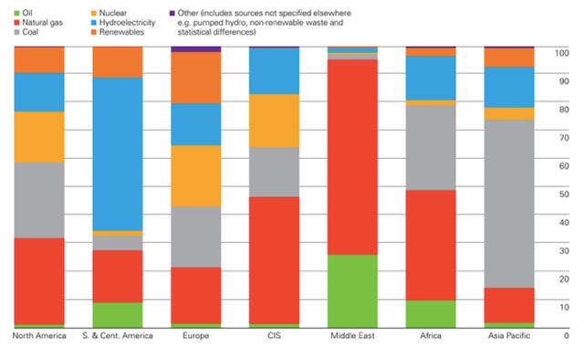 In sharp contrast to these countries, Russia has a Soviet legacy of full electrification. Yet power generation from renewables last year, excluding hydro-electricity, was only 0.1% of total output. Russia is instead pushing for more nuclear power, which is unpopular in the West. On the other hand, its coal dependency for electricity is in the low teens; most Russian power comes from gas.