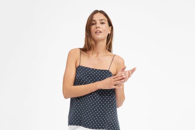 This machine-washable polka-dotted cami from Everlane has us dreaming of warmer weather (which will arrive not that far from now).