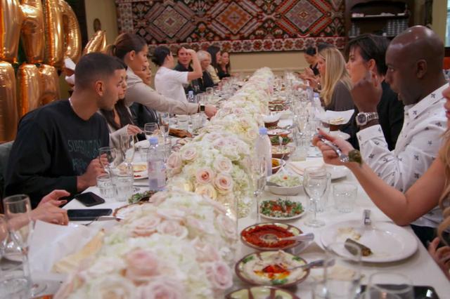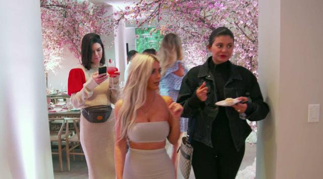 In the final scene of the night, Kim’s Cherry Blossom dream comes #True (Thompson). All of her sisters but Kourtney are there. Kylie, who’s about six months pregnant, even makes her Season 15 debut, clad in a black-wetsuit-looking outfit and jean jacket. Kim’s party features a lot of celebrities, like her BFF Chrissy Teigen, who is now tied with Calabasas critter, Jonathan Cheban, for screen time this season. Won’t God do it! Even though Kim knows she and Kourtney are in a not great place, she’d hoped that she could set that aside for the greater good of her Cherry Blossom party. Khloé, on the other hand, tells people at the party that Kourtney has emotionally removed herself from the family. This scene was filmed on November 11, 2017.
