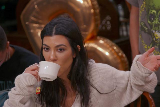 After some slight prying from Kim as she supped the sweet venom of Lipton’s latest petty tea, Kourtney admits that she’s been feeling disconnect from Khloé. It could be her sister’s pregnancy hormones, her sister’s remote location (Cleveland), or just sisterly blues, but the current state of their relationship has gotten her pretty sad. Kim tells Kourtney not to think too much about it, because Kourtney obvi remembers how her personality changed when she was pregnant, according to Kim. But, according to Kourtney, she doesn’t remember, because says nothing of the sort, just drinks her tea and looks away. This first scene was filmed on October 26, 2017.