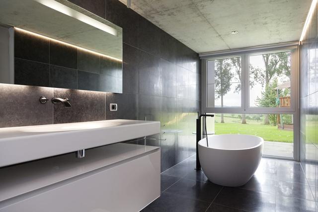 8: This home is surrounded by a nature reserve, so bring on those floor-to-ceiling windows…even in the bathroom. Here, the only eyes you need to worry about hiding from are the local foxes and weasels.