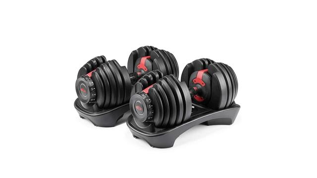 Why pick one or two dumbbells in a set when you can mix and match with the twist of a dial? The Bowflex SelectTech means each dumbbell can change from around five pounds to over 50 pounds.