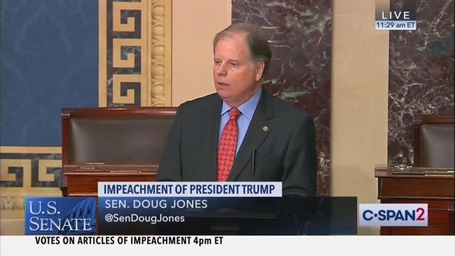 Sen. Doug Jones (D-AL), who is facing an extremely difficult re-election bid in a deeply red state, announced on Wednesday that he would be voting to convict President Donald Trump on both articles of impeachment. “There will be so many who will simply look at what I’m doing today and say it is a profile in courage,” the senator said. “It is not. It is simply a matter of right and wrong. Where doing right is not a courageous act. It is simply following your oath.”
