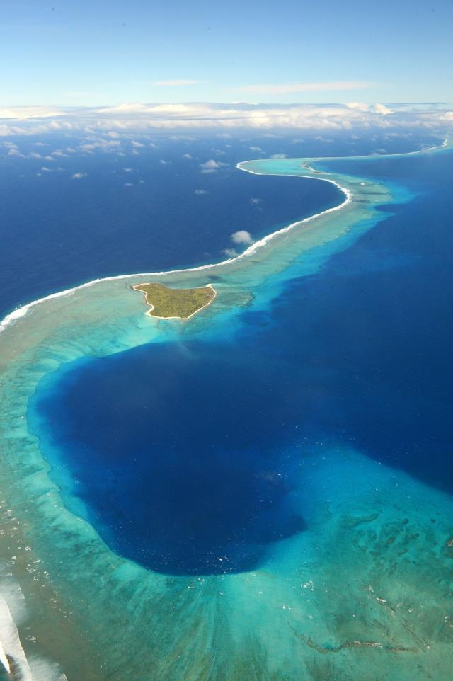 In this aerial image, 80-meter-deep Bravo Crater is seen on January 27, 2014 in Bikini Atoll, Marshall Islands.