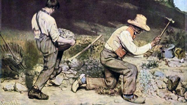 “The Stonebreakers” was based on two men, one young and one old, who he discovered engaged in grueling work on the side of the road when he returned to Ornans for an eight-month visit in October 1948.