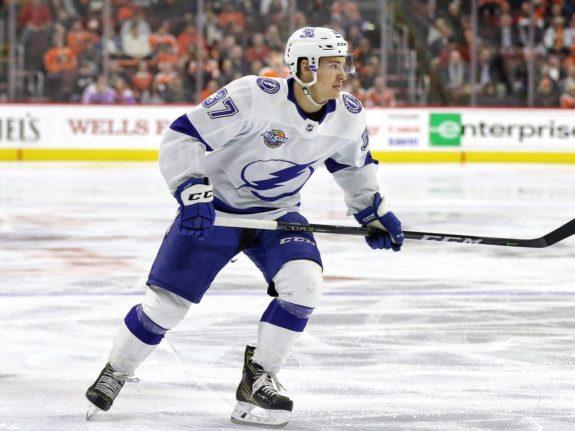 The Tampa Bay Lightning locked up Nikita Kucherov with an eight-year contract extension that will keep the all-world scorer in Tampa Bay for years to come. (Christopher Hanewinckel-USA TODAY Sports)