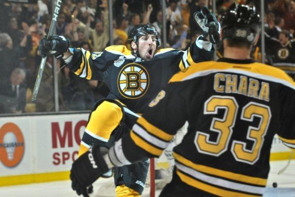 Fittingly, the diminutive forward left his paw prints all over the clinching game. Not only did he factor into three of the team’s four goals, but he also got the honor of scoring the empty-netter to ice the series. Marchand didn’t miss any opportunity to revel in the glory. Some of his post-win activities included getting matching tattoos with fellow rookie Tyler Seguin, getting too drunk to appear on the commemorative DVD, and eating an entire box of Cinnamon Toast Crunch out of the Stanley Cup.
