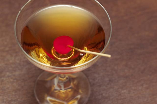 Method: Stir liquid ingredients together with ice. Strain into a chilled coupe glass and garnish with a cherry.