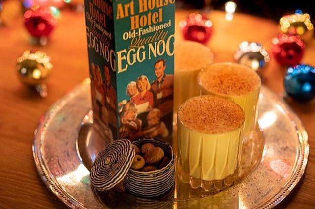 The cocktail menu has been appropriately updated with Christmas movie inspiration, too. Holiday punch can be poured directly from the iconic “fra-gee-lay” leg lamp from A Christmas Story. A housemade, Clark Griswold-inspired holiday eggnog spiked with Pierre Ferrand Cognac is served straight from the carton. The bar is also offering new twists on classic holiday cocktails, like the Spruce Tree Martini (with bold pine notes), a Negroni with hints of cranberry sauce served in a cranberry sauce can, and a Cold Fashioned (an Old Fashioned with Mr. Black Cold Brew Coffee Liqueur). All are served in vintage cans with bespoke, retro-holiday labels.