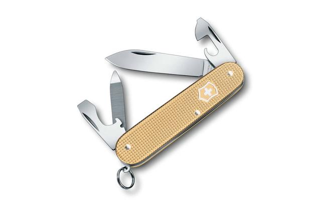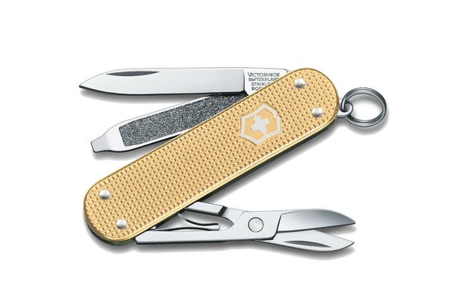 If you’re not up to date with the limited edition Alox collection, you may have heard about its silver edition released last year that sold out faster than you could say “pocket knife.” Nonetheless, Victorinox’s limited edition Alox is back in champagne gold with three sizes, a distinctive rubbed surface for enhanced style and grip, and personalized tools to cater to your needs.