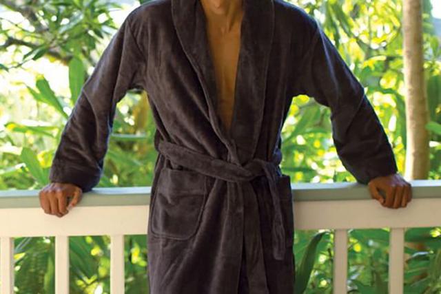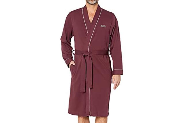 Terrycloth is a common fabric used in luxe hotel bathrobes because it’s super soft and absorbs water easily, and this knee-length robe from Riley Home is ideal to wear after stepping out of the shower. Even better, it has pockets, and is available in larger sizes for big and tall guys.