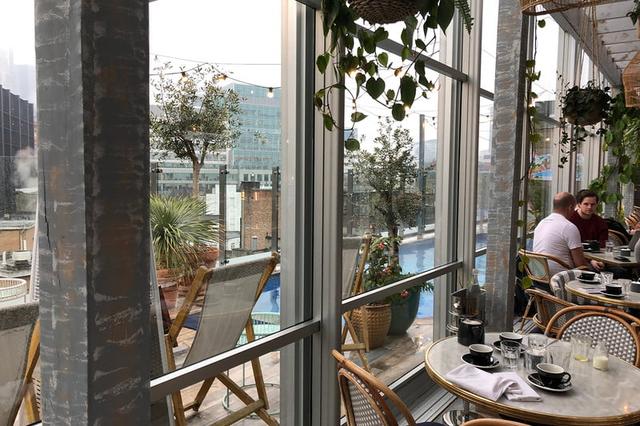 Many guests’ first experience with the dining program at The Curtain London is at Lido, the hotel’s rooftop restaurant, and why not? Located on the top floor next to the pool, Lido is what can only be described as a greenhouse or conservatory in the sky. Featuring a retractable glass roof (and all glass walls), lush hanging plants and greenery everywhere, a charming and rustic interior design, and all-day dining open only to hotel guests and Club members, Lido is the place to be for breakfast in Shoreditch. But Lido is so much more than its breakfast buffet; it also does lunch and dinner with a Mediterranean slant on dishes such as spice lamb meatballs and a grilled five-cheese and truffle sandwich.