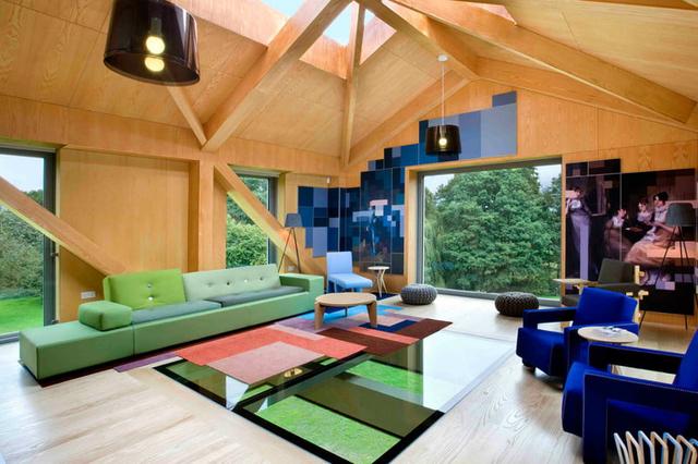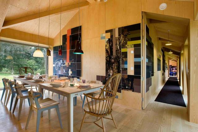 Throughout the home, large picture windows frame beautiful views of the English countryside. But there are also bonuses that make this holiday getaway stand out from the rest. The home, which sits on six private acres, is also a gallery for ultra contemporary artwork.