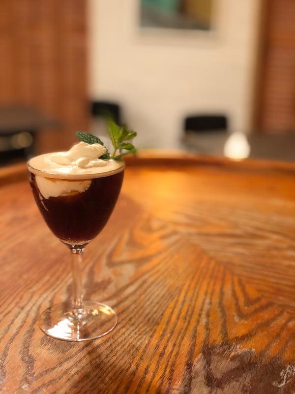 Method: Add applejack, Branca Menta, and espresso to a shaker. Shake vigorously and strain into a glass. Add Sambuca and heavy cream to a shaker and shake vigorously until combined into a smooth whipped cream. Spoon the whipped cream on top of the cocktail and garnish with a mint leaf.