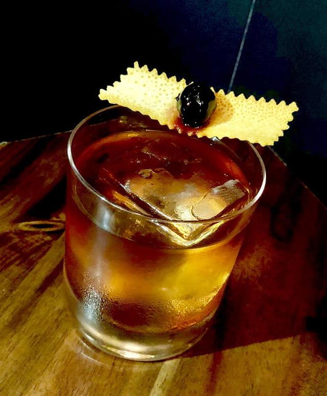 Method: Add all ingredients to a cocktail shaker and stir until fully combined. Strain into a glass and garnish with an orange peel and a maraschino cherry.