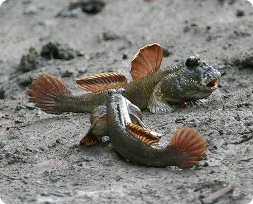MUDSKIPPER. It is found in areas of the tidal zone and in areas such as tropical marshes, formed in places of growth of the mangrove tree. Especially mud jumpers like to settle in places where fresh water meets sea. And although from a scientific point of view it is fish, many perceive them as amphibians. Well, in a way, that's what it is.