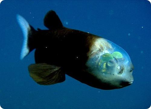 The name of this fish in Latin sounds too boring, because it is easier to call FISH WITH a TRANSPARENT HEAD. It has a transparent head through which she can see their tubular eyes. Head, through which the fish is watching the production, helps protect the eye. It was first opened in 1939. It lives at a much greater depth, so it has not been fully studied. In particular not entirely clear was the principle of view of the fish. It was believed that it should experience very great difficulties due to the fact that it can only look up. Only in 2009 was fully studied the structure of the eye of the fish. Apparently, when trying to study it earlier, the fish simply did not tolerate a change in pressure.