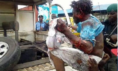 Eyewitnesses further stated that when accosted, the madman attempted to run inside the tunnel, but was apprehended and beaten to a pulp before the arrival of security agents, who rescued him from the mob.