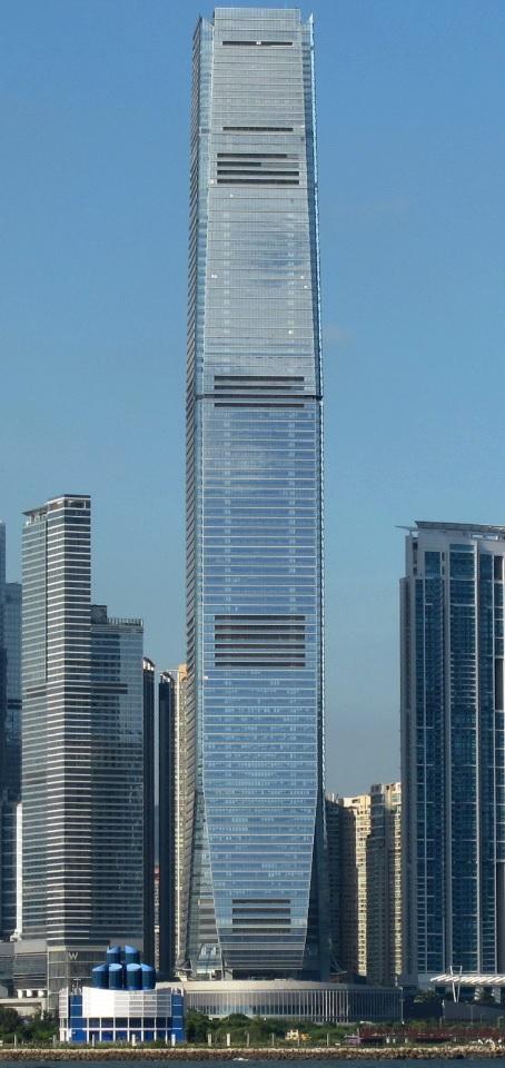 International Commerce Centre (Chinês tradicional:環球貿易廣場), esse centro internacional de comercio fica em Hong Kong, inaugurado em 2010, possui 118 andares com hotel, escritórios, praça de alimentação, e um observatório.