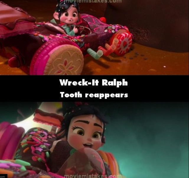 4. Wreck It Ralph (2014): In this movie about characters who live inside old arcade games, making a mistake could cost them their very existence inside the arcade. Thankfully, the animators’ own mistakes didn’t have such drastic consequences, but they’re still noticeable.