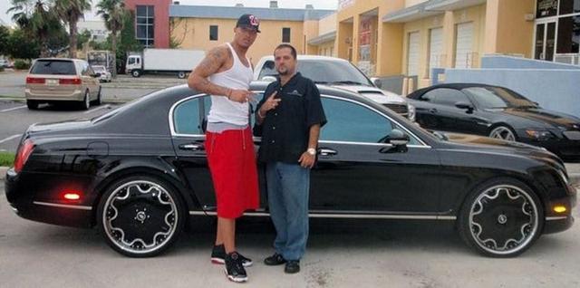 This guy is special because he's one of the rare players in the NBA who are ambidextrous, meaning he can use both his right and his left hand to play, but he actually shoots with the left one. Beasley Jr., a 29-year-old small/power forward with the New York Knicks, grew up with top NBA players like Kevin Durant and Nolan Smith, so their friendship didn’t just start on the court. His contract with the Knicks and his endorsement deal with Nike and Adidas have allowed him to get cool whips like his all-black Range Rover, which he fitted with 24-inch Forgiato Concavos and a chrome lip, plus a four-door Bentley Flying Spur, for which he also recently got a cool set of rims.