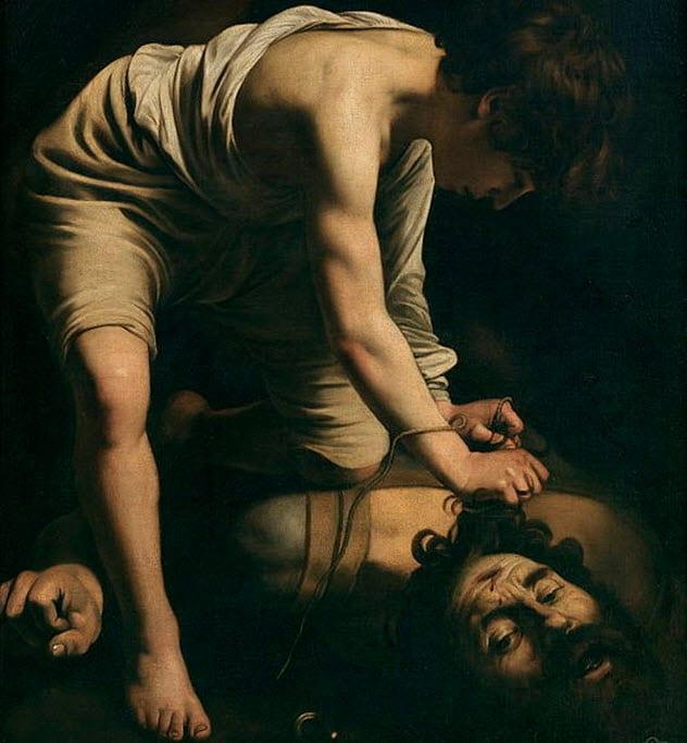 This striking painting is the renowned David and Goliath by Caravaggio, an Italian Baroque master of the 16th century. Caravaggio is no small name. His artwork influenced many an artist throughout time, including Rembrandt. Almost everyone views him as a perfect artistic genius, right?