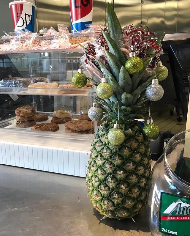 happy holidays from the place i've been spending all my time at lately #getyourselfasandwich #pineapplechristmas ?