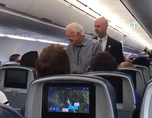 "For decades since he left office, he has shaken hands with his fellow travelers on planes. He enjoys it, and passengers are excited to get to interact with a former president."