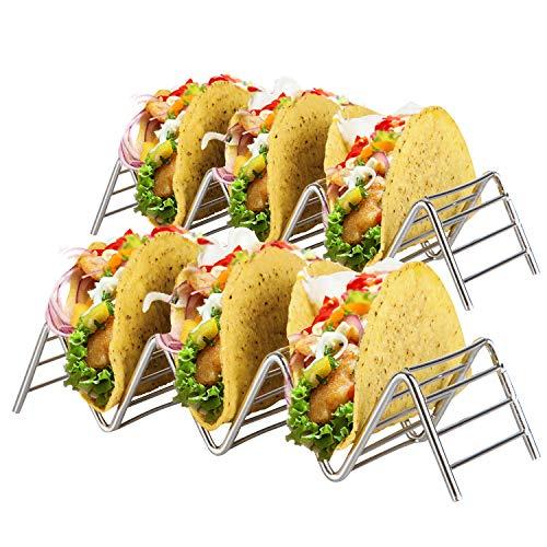 Soporte Para Tacos Mexicanos: 2 Bandejas Metálicas de Alambre Para Servir Tacos de Concha Blanda y Dura - Portatacos Aptos para Grill, Horno y Lavavajillas - Geniales para Fiestas Infantiles