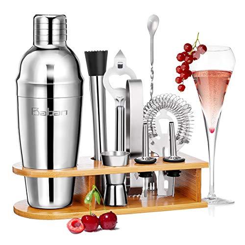 Baban coctelera Kit Profesional 10 Piezas, Cocktail Kit,750ML Cocktail Shaker, Que Incluye un Exquisito Marco de Madera Conjuntos para el Bar; Juego de Regalo Completo