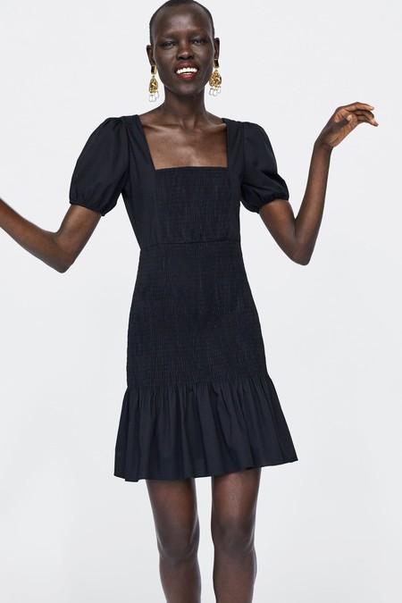 La época de rebajas sigue su curso y la firma española nos ofrece esta versión parecida a la anterior por muchísimo menos: 29,99 euros. De color negro y con detalles que lo diferencian del original (el volante de la falda es mucho más largo y las mangas más abullonadas), este diseño podría convertirse en la prenda comodín de nuestro armario gracias a su versatilidad.