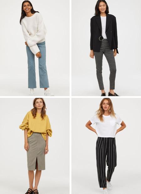 Ya hemos cubierto las partes de arriba, pero no olvidamos las de abajo. En H&M hay opciones para todos los gustos, desde pantalones de traje en azul cielo (14,99 euros) hasta diseños ajustados y estampados como los de las fotos, ya sea con rayas (14,99 euros) o con print geométrico (14,99 euros). Y si eres más de faldas, te adelantamos que los cuadros siguen triunfando este otoño (14,99 euros).