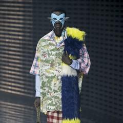 Desde la invitación con forma de máscara de papel maché de Hermafrodita, Alessandro Michelle ha querido resaltar el carácter andrógino de la colección, y así hemos visto desfilar mujeres que llevan traje con corbata y hombres que lucen estampado florales.