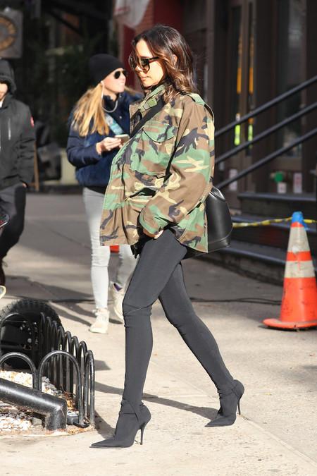 Victoria Beckham, en cambio, esta vez ha optado por lucir la tendencia (si es que alguna vez se fue) del estampado de camuflaje, luciendo una chaqueta militar oversize. Para darle el protagonismo absoluto, la británica la combinó con un total look negro.