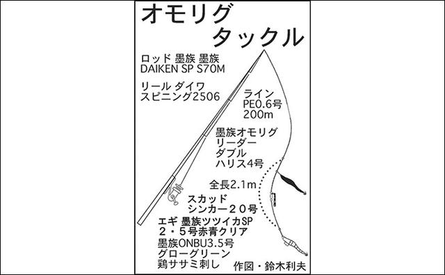 私はオモリグ仕掛けに変更して、大型ヤリイカを狙う。